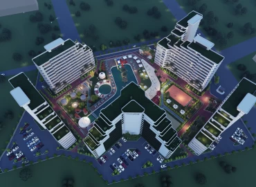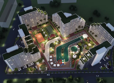 24230 m2 arsa üzerine kurulu A blok 12 katlı toplam 90 adet B blok 12 katlı toplam 143 adet C blok 12 katlı toplam 91 adet D blok 12 katlı 90 adet E blok 152 adet 3+1 2+1 ve 1+1 dairelerden oluşmaktadır.